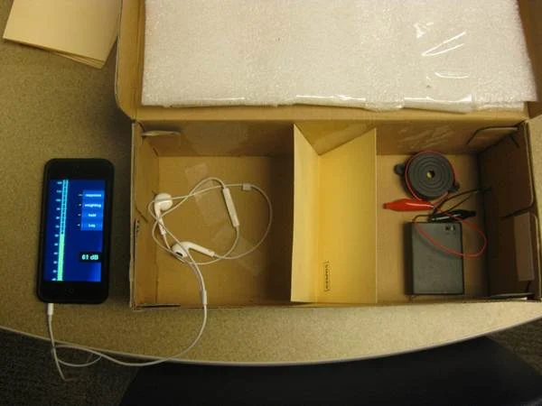 Testing station for the "Sound Reducing Wall" SLED activity for grade 3 classroom.